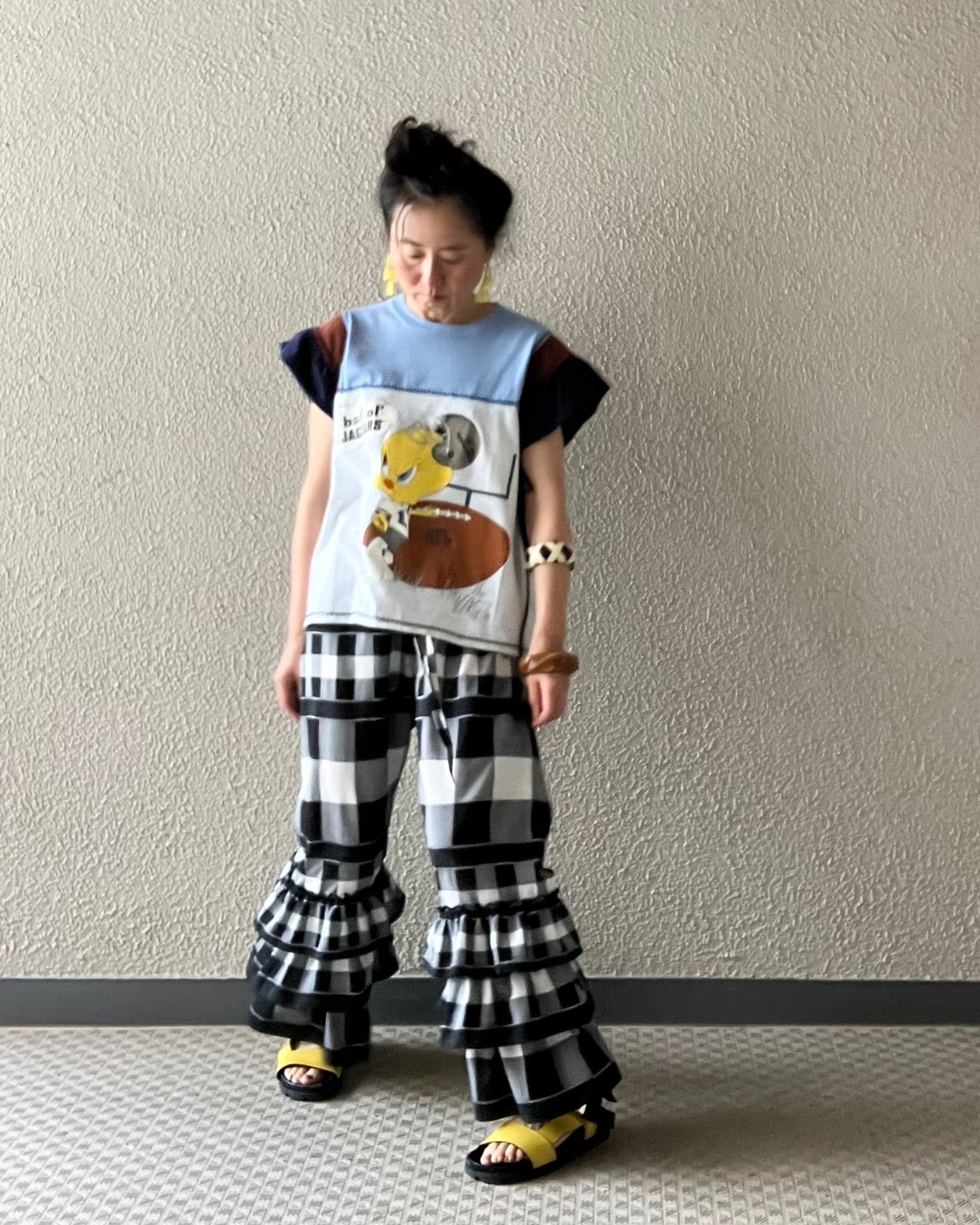 メインのTシャツはアメリカのアニメ、ルーニーチューンズのキャラクタートゥイーティー