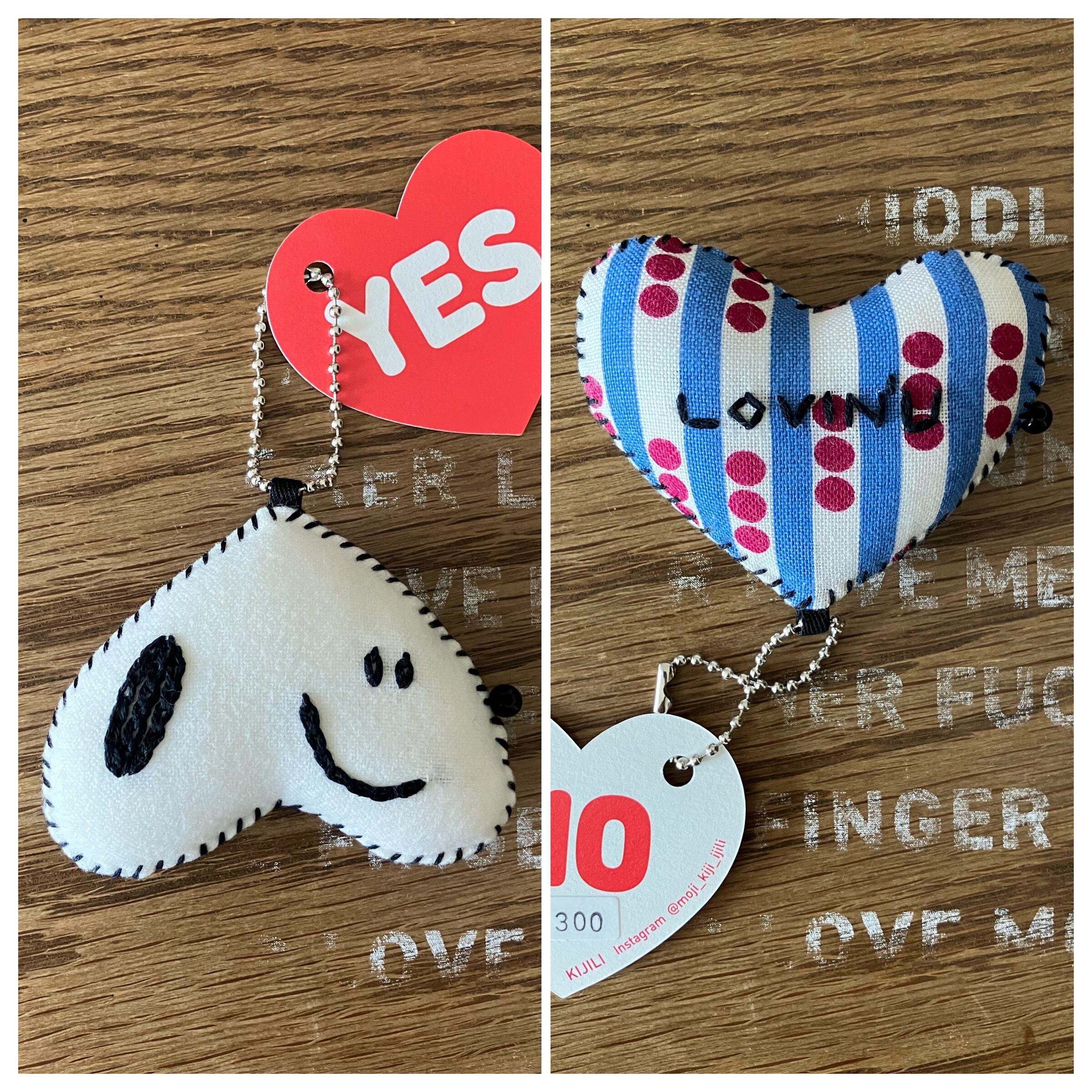 ハートの方は'フィードサック'と言う、1930-1950年代のアメリカのビンテージ生地を使用