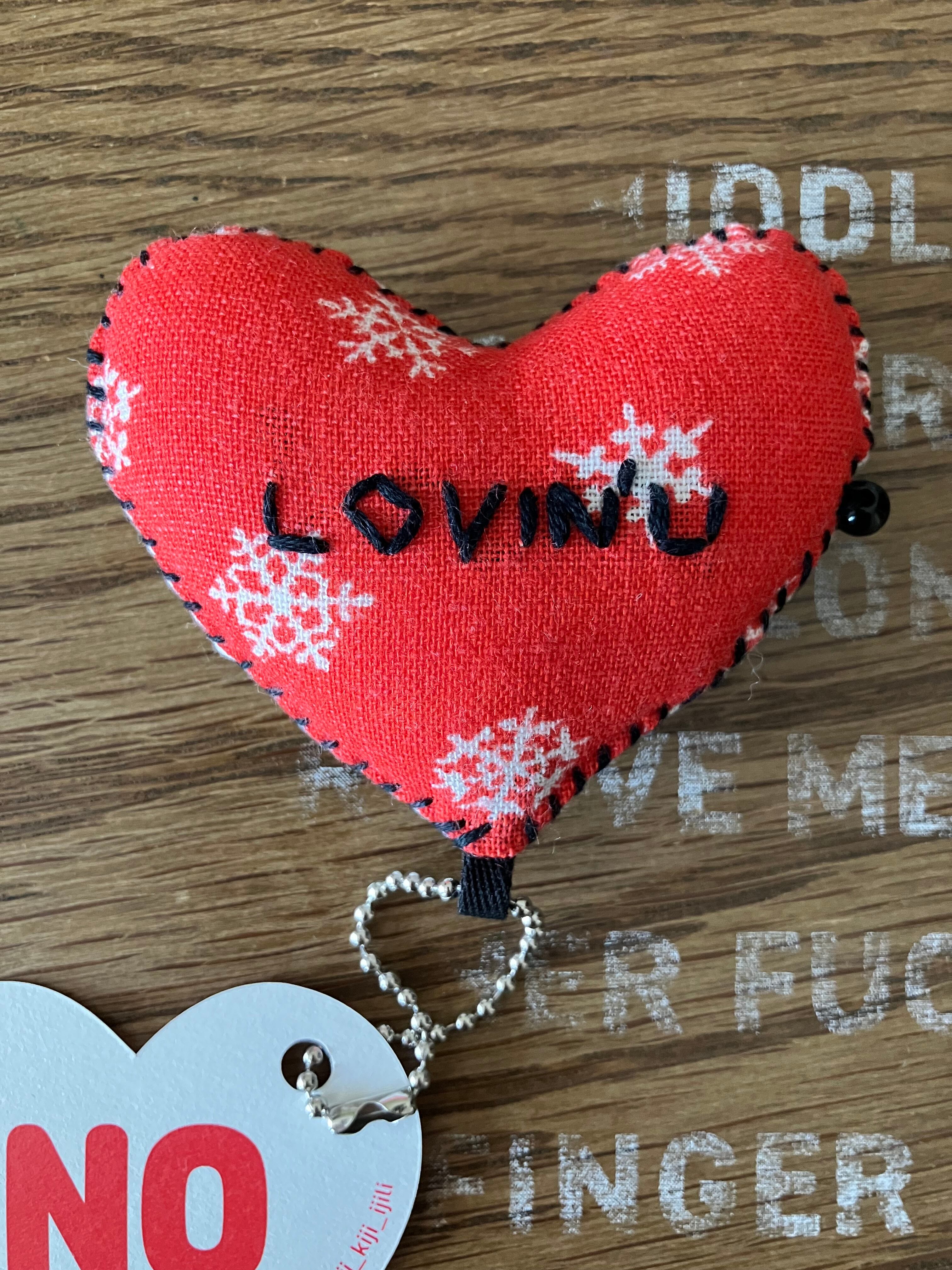 ハートの方は'フィードサック'と言う、1930-1950年代のアメリカのビンテージ生地を使用