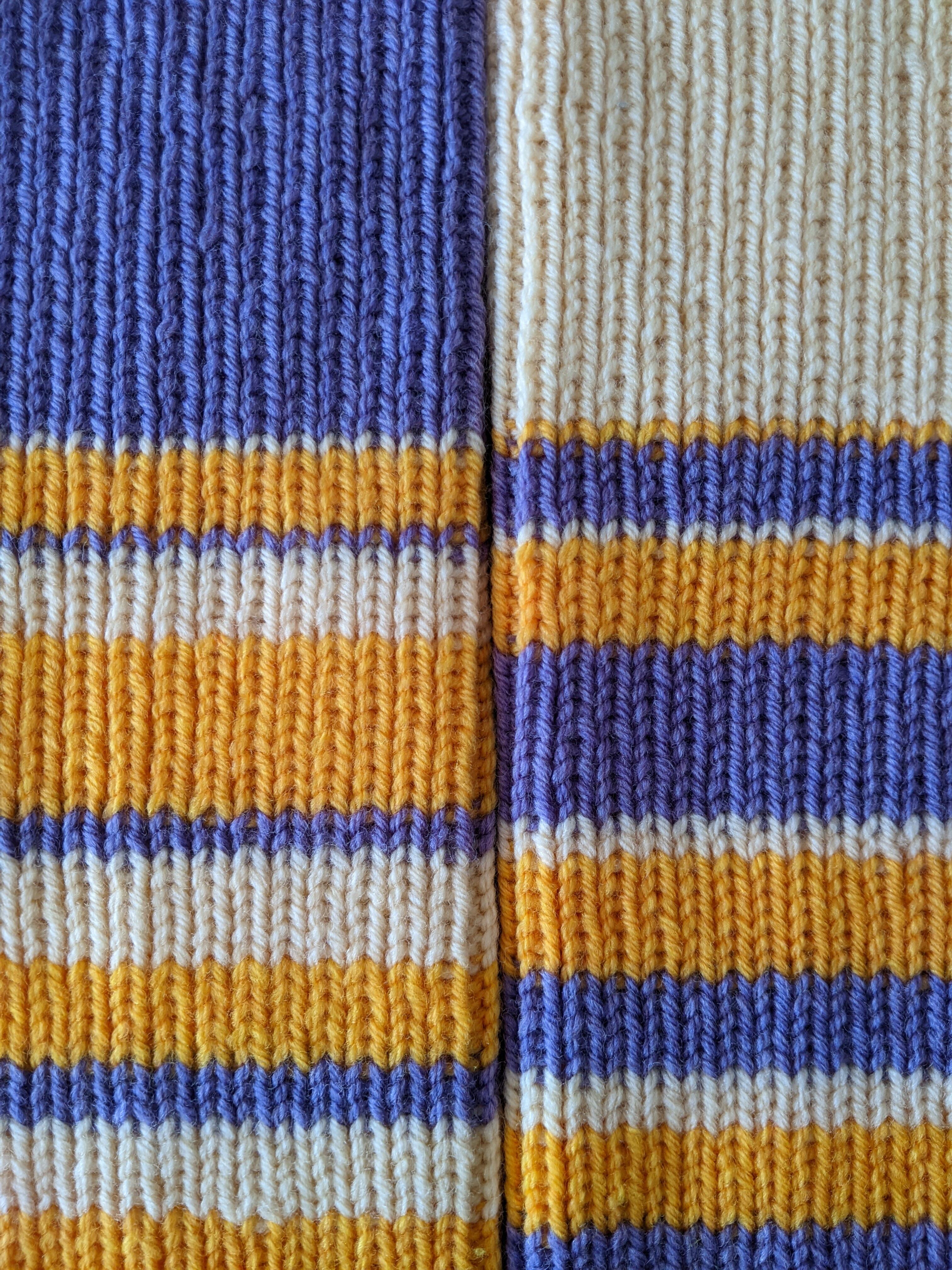 手編みのボーダーレッグウォーマーになります。